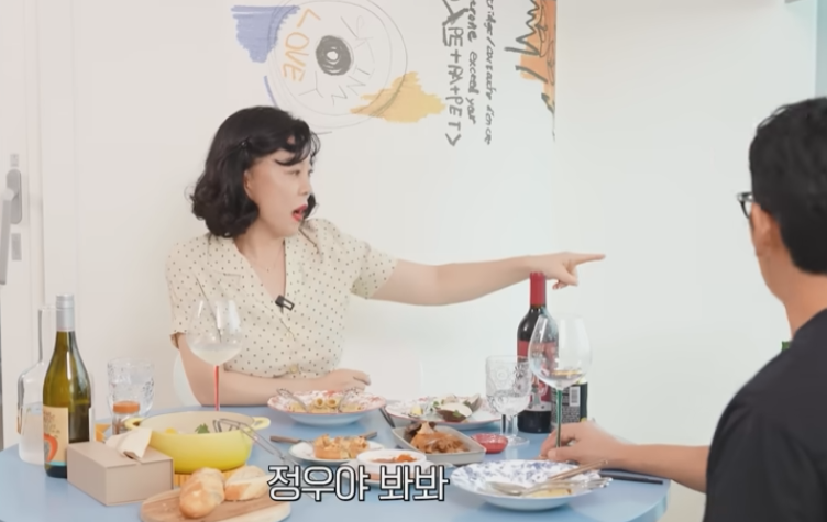 백합 조개찜과 상큼한 샐러드 같은 요리를 즐기면서 와인과 음식에 대해 이야기 하며 하정우가 좋아하는 스타일의 여자에 대해 이야기합니다.