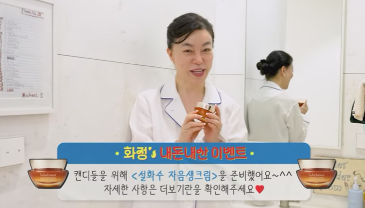 최화정은 60이 넘은 나이에 설화수 앰버서더로 지정되어 너무 비뻐하며 행사 소개와 이벤트 내용도 전합니다.