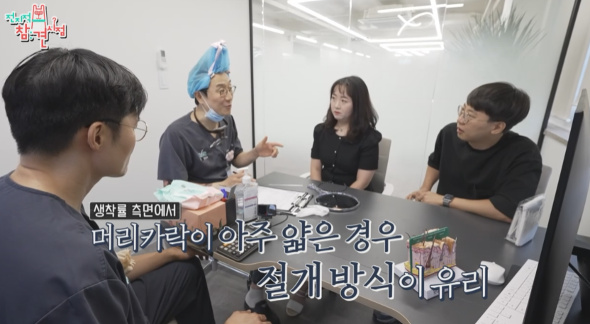 이날 방송에서 한상보 원장님께서는 장장 8시간에 걸친 모발 이식 수술로 바쁜 일과를 보내셨습니다. 한 땀 한 땀 모발을 채취하고 이식하는 장시간의 수술 동안 원장님께서는 직원들과 찰떡같은 호흡을 자랑하셨으며, 숙련된 손길로 수술을 진행해 참견인들의 두 눈을 휘둥그레지게 만드셨습니다.