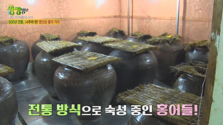 바람이 잘 통하는 항아리가 홍어의 숙성을 도와 더 깊은 맛을 낸다고 합니다.