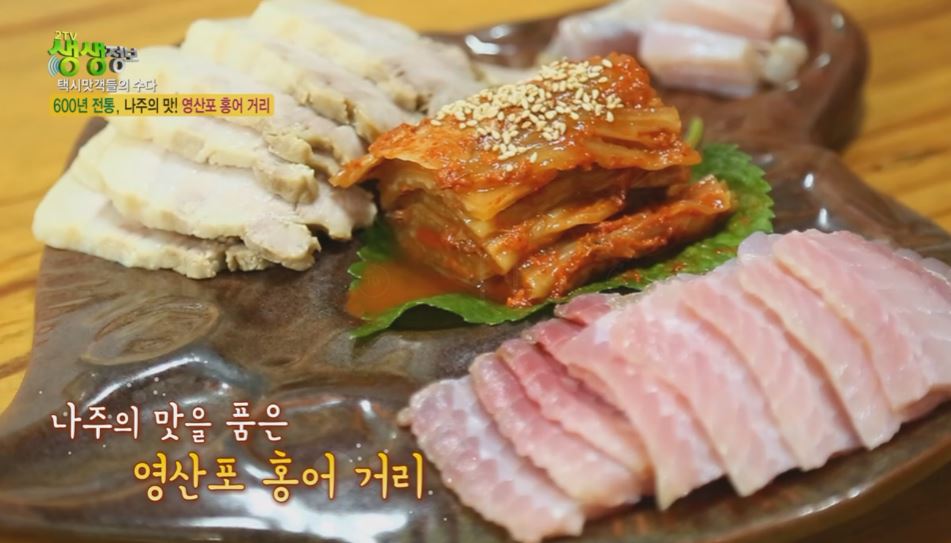 흑산도에서 잡은 홍어를 영산포로 가져오는 과정에서 자연 숙성된 것이 별미라 알려지기 시작한 게 삭힌홍어의 시초라고 합니다.