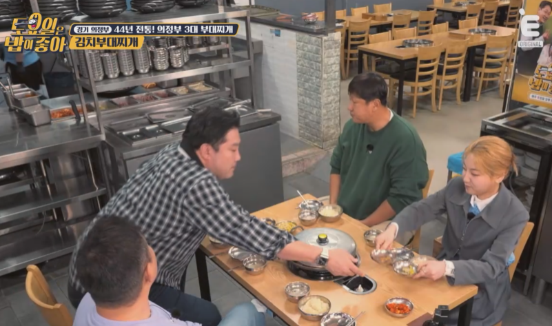 김치찌개와 부대찌개의 두가지 맛 모두를 볼 수 있습니다.