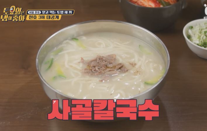 천호 주민들이 줄 서서 먹는 30년 전통 로컬 맛집 30년 전통 사골 국물의 끝판왕으로 불리는 이 집 사골 칼국수는 마치 크림 스프 같은 녹진한 사골 육수의 깊고 진한 맛이 그대로 느껴지는데요.