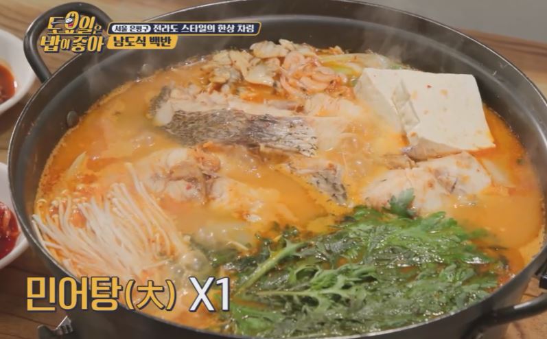 진정한 보양식 민어탕 쫄깃 탱탱한 맛에 생선을 싫어한다는 이대호도 생선이 맛있다고 잘 먹습니다. 모두 밥을 다시 주문하고 맛있게 먹으며 각종 반찬에 비빔밥으로 만들어서 먹습니다.