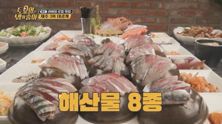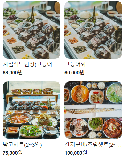 2. 갓 잡은 쫀득고소한 제주산 활 고등어회부터 갈치에 정복회, 굴, 멍게 등 바다의 맛 가득한 해산물 8종과 딱새우, 돌문어, 전복, 뿔소라 등 귀한 재료들이 푸짐하게 들어간 새콤시원한 모두 물회, 갈치 한 마리를 통째로 튀겨낸 갈치 튀김까지 해산물의 대향연이 펼쳐지는 고등어회 한상입니다.