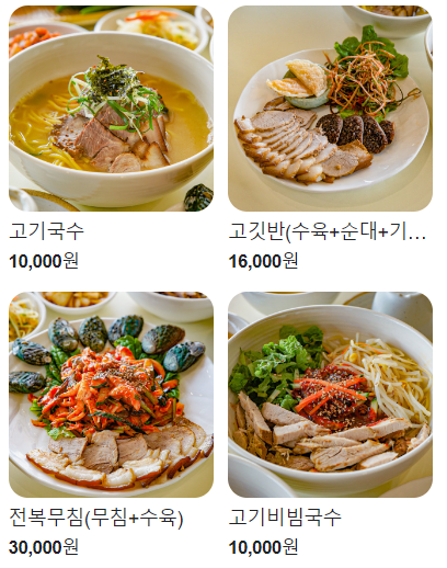 1. 제주산 흑돼지 뼈를 24시간 고아낸 진한 육수로 구수한 맛이 정점을 찍는 고기 국수