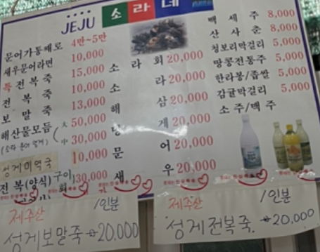 서귀포시 성산읍 바다 바로 앞에 위치한 식당 3대째 해녀 집안 평생 제주 바다를 헤엄진 사장님 해초를 먹고 자란 깨긋한 보말 구수한 보말죽으로 재탄생 성게는 5, 6, 7월에 잡아서 잡자마자 깨긋하게 손질 후 급랭해서 1년 치 보관 후 사용하십니다.
