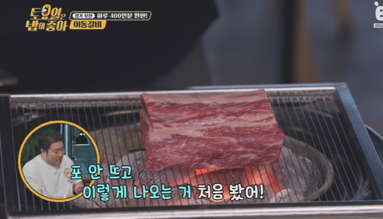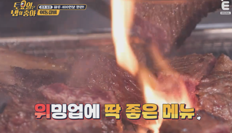 이동갈비는 양념 그대로 구워 먹으며, 양념의 맛과 육즙을 최대한 살려서 먹는 것이 포인트입니다. 구운 김치와 함께 먹어도 맛있습니다.