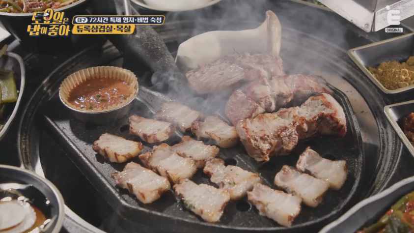 첫번째 아침식사는 대구 72시간 특제 염지 비법 숙성 듀록삼겹살과 목살입니다.