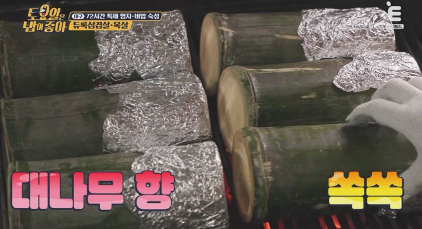 대나무 통에 넣어 1차 초벌후 숯불에 겉면만 2차 초벌합니다.