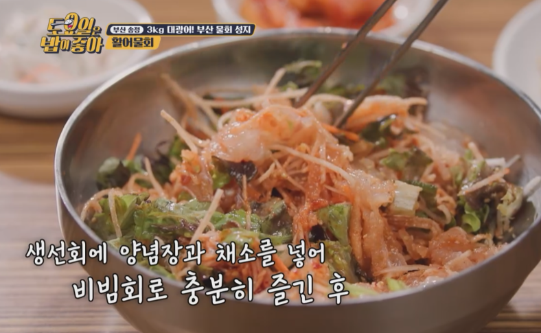 토요일은 밥이좋아, 부산 송정 3kg 대광어 활어물회 당일 잡은 신선한 대방어회를 10일 숙성한 양념장과 비법 육수가 만나 먹자마자 바다를 닮은 청량감이 확 터지는 활어물회를 소개합니다.