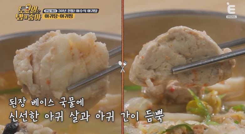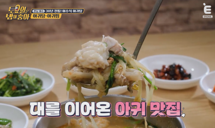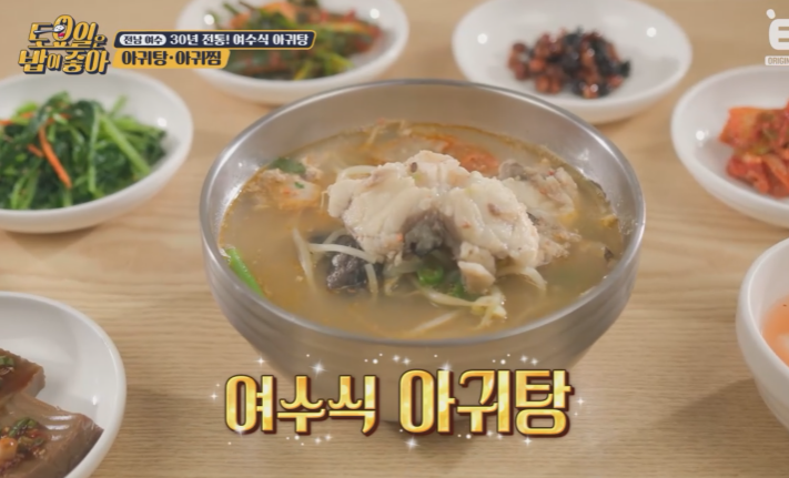 시어머니에 이어 2대째 30년 넘게 영업 중이며 여수식 아귀탕으로 된장 베이스 국물에 신선한 아귀 살과 아귀 간이 듬북 들어가고 신선한 아귀 간을 으깨 넣어 묵직하고 깊은 맛입니다.