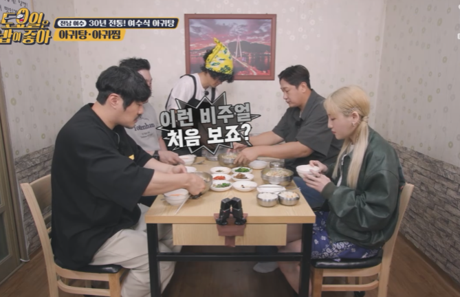 전현무계획 포항 이동구 선수와 함께 특별한 디저트가 있는 장소 낭만적인 바다보며 먹는 포항의 디저트는 물회를 먹으러갑니다. 창을 통해 보이는 여남항의 오묘한 보라빛 빛깔포항식