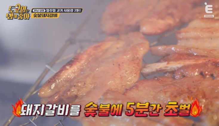 식당에서 직접 구워서 나오는 숯불돼지갈비