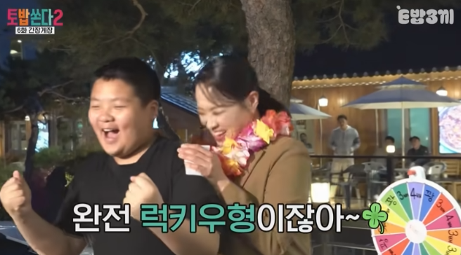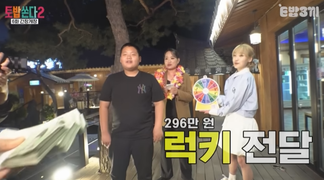 돌림판을 돌린 우형이가 **4배 캐시백(296만 원)**에 당첨되며