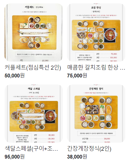 토밥, 김해 한우 암소 불고기, 한치 가자미 물회, 듀록 삼겹살 껍목살, 생갈비 김치찌개