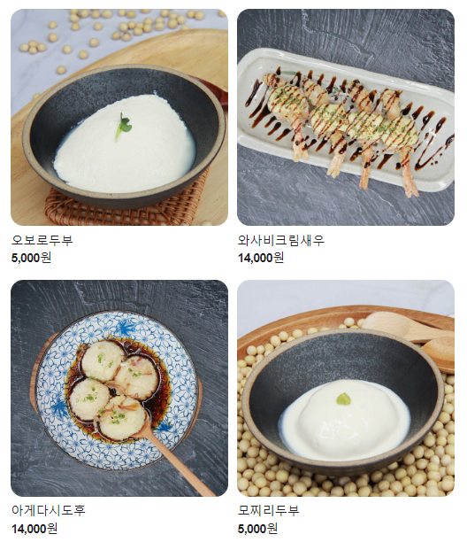 100년 전통 두부 장인에게 전수받은 레시피 수제 연두부를 바삭하게 튀겨 특제 소스에 적셔 먹는 아게다시도후와 직접 만든 진한 두유에 달달함까지 더한 두유 소프트 아이스크림.