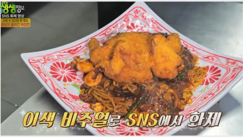 생생정보 [SNS 화제 영상] 조회 수 353만 뷰, 통닭이 올라간 이색 짜장면을 소개합니다.