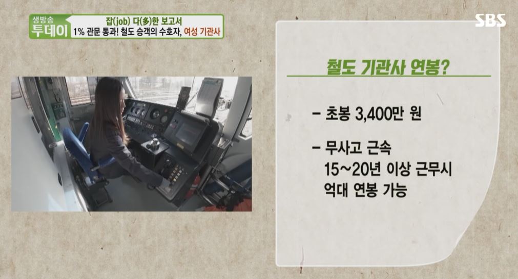 생방송 투데이 잡(job) 다(多)한 보고서의 주인공은 200m의 열차를 운전하는 1% 확률의 주인공 여자기관사의 하루일과와 연봉 등을 소개합니다.