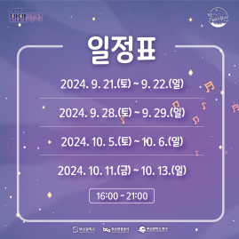 - (기 간) 2024. 9~10(9/21, 9/22, 9/28, 9/29, 10/5, 10/6, 10/11~10/13)