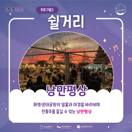 ○ 화명생태공원의 일몰과 야경을 바라보며 전통주와 먹거리장터 음식을 즐길 수 있는 ‘낭만평상’에서는 익어가는 가을밤의 정취를 만끽할 수 있습니다.