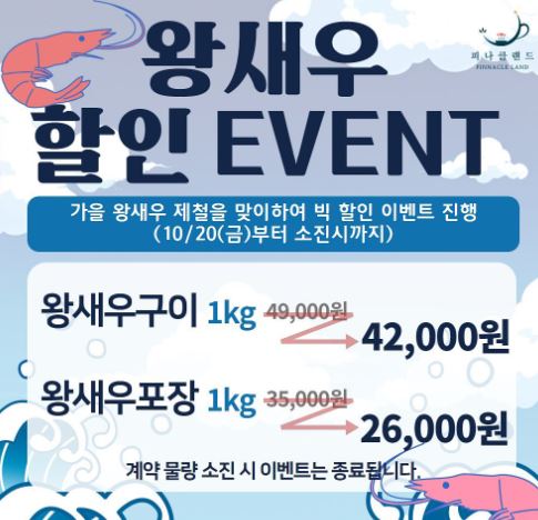 10월 20일 이번주 금요일부터 왕새우 할인 이벤트를 진행합니다!