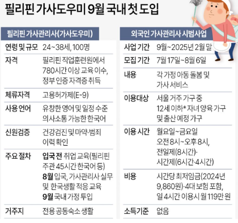'필리핀 이모님 몸값 너무 비싸네'…도입한 오세훈도 탄식, "홍콩 월 83만원, 싱가포르 48만~71만원인데" "비용 많이 들어 현재로선 제도 취지 반영 못해" E7 비자 활용하거나 수요자 직접 계약 등
