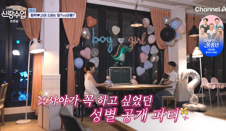 11일 방송된 채널A ‘요즘 남자 라이프-신랑수업’ 131회에서는 심형탁이 아내 사야가 준비한 젠더리빌파티에서 성별을 기대하게 되며 "친구 같은 아빠가 되겠다"고 다짐하는 장면이 그려졌습니다.