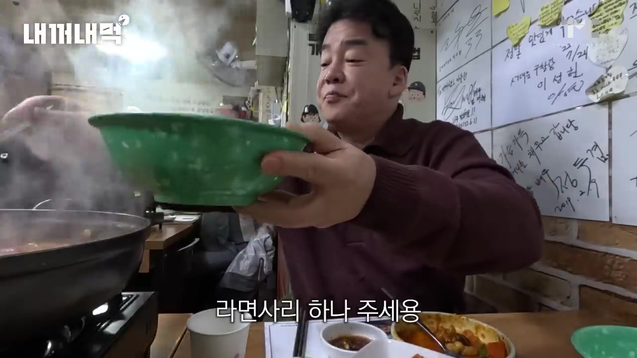 1.️🍜식당에서는 날씨가 추워서 맛있는걸 먹으러 와서 백대표를 만나 반가워 합니다.