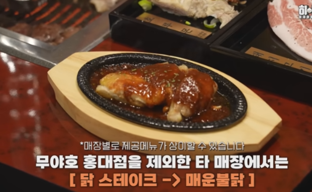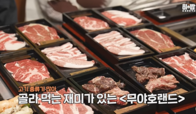 같은 무한리필 컨셉으로 인기 있는 무야호 랜드에서는 야끼니꾸뿐만 아니라 순두부, 떡볶이, 닭 스테이크, 매운 불닭, 오코노미야키 야키소바 등 다양한 메뉴를 제공해 골고루 맛볼 수 있는 재미를 선사합니다.
