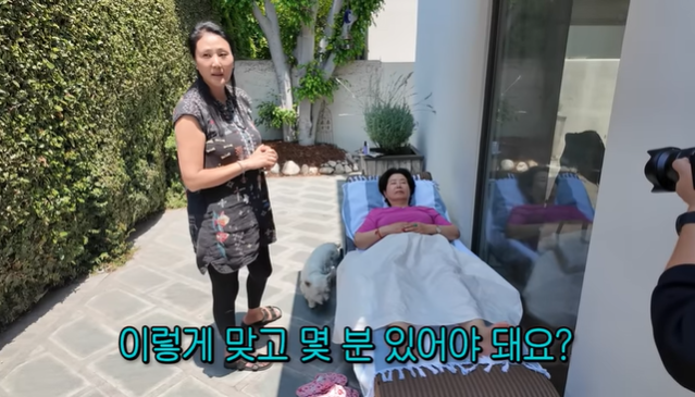 LA의 강한 햇빛 탓에, 선우용여 씨는 선크림을 꼼꼼하게 바르는 모습도 보였죠.