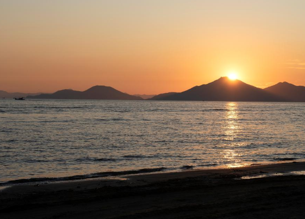 붉은 하늘과 바다빛이 어우러지는 순간이 아름답습니다.