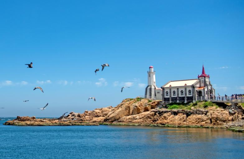 하얀 성당과 푸른 하늘이 어우러진 풍경은