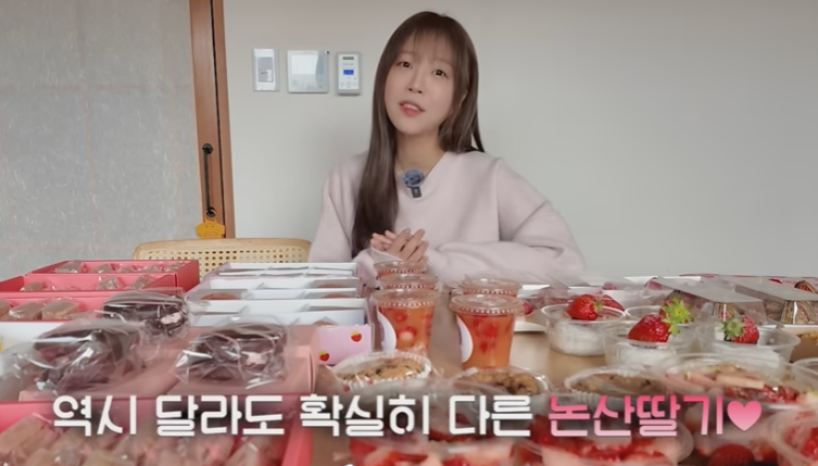 쯔양은 영상에서 딸기와 조화를 이루는 다양한 길거리 음식을 맛보았습니다.