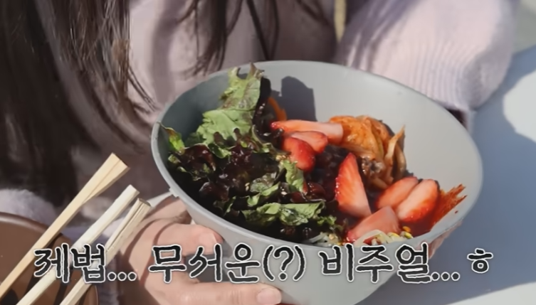 딸기비빔밥에는 고추장 대신 ‘딸기 고추장’을 사용해 새콤달콤한 맛의 조화가 돋보였습니다.
