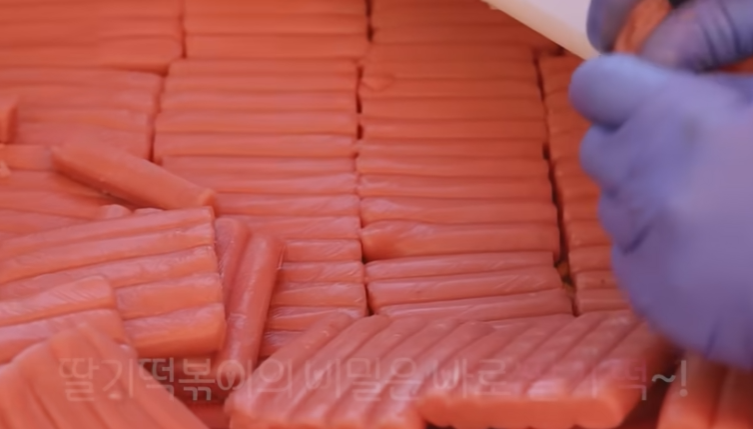 딸기떡볶이에는 딸기잼과 생딸기를 갈아 넣어, 매콤함 속에 달콤함이 조화를 이루고