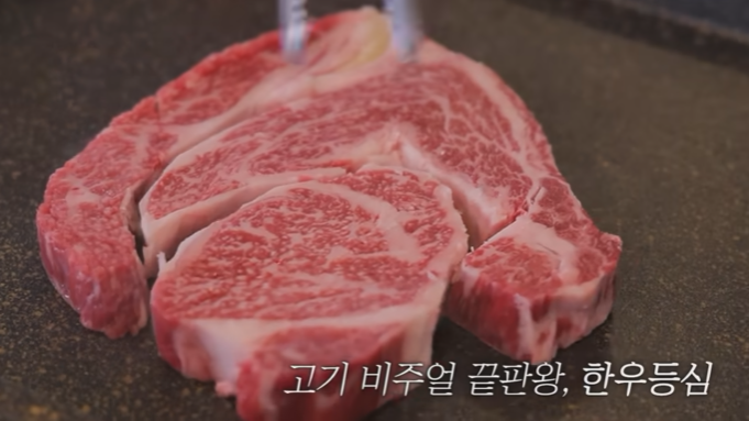 영상에 따르면, 이 정육식당은 고품질 고기로 입소문이 나