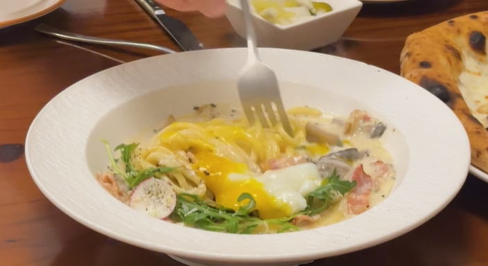 그리고 성시경이 가장 극찬한 메뉴 중 하나는 바로 까르보나라였는데요, 부드러운 노른자와 치즈, 고소한 풍미가 입안을 가득 채우는 명불허전의 맛이었습니다.