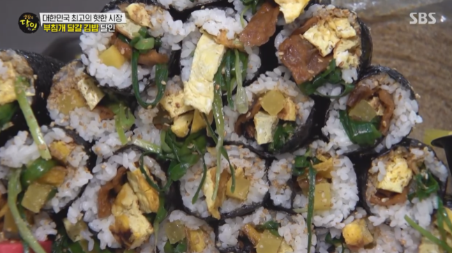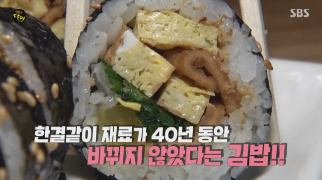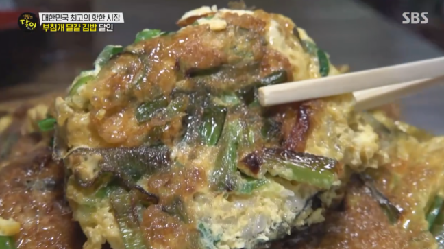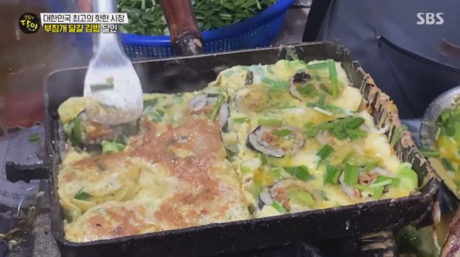- 부침개처럼 노릇하게 구운 달걀을 두툼하게 감싼 김밥