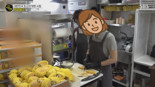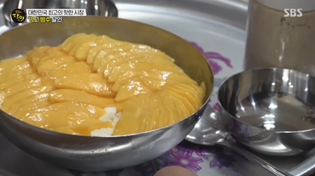 특히 얇게 썬 생망고를 층층이 올린 모습이 단무지를 연상시켜