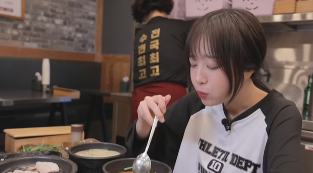 쯔양은 국밥 국물을 한 숟갈 뜨자마자 감탄했어요.
