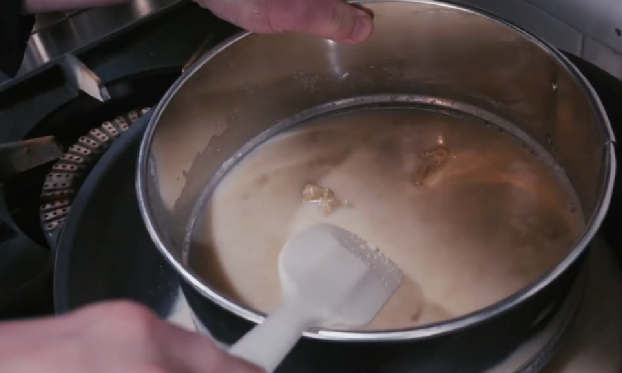 - 바닥이 눌지 않게 처음부터 끝까지 계속 젓기