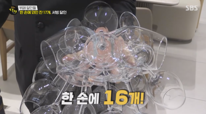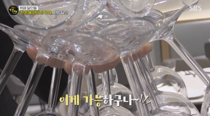 한 손에 와인잔 17개를 들고 서빙하는 ‘서빙 달인’의 장면!