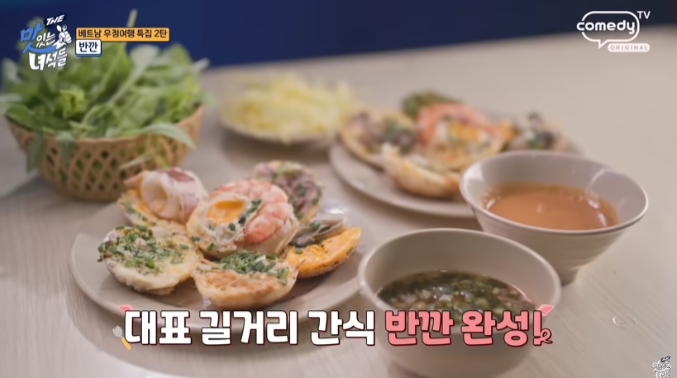 달걀이 듬뿍 들어간 이 전통 간식은 작은 틀에 구워낸 전과 유사하며, 피시 소스를 곁들여 먹는 독특한 스타일이 특징입니다.