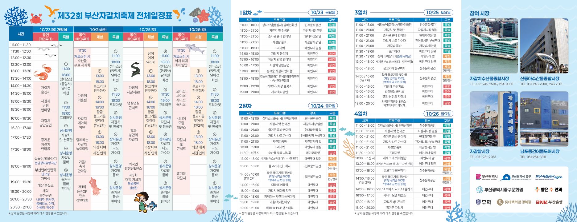 - 문의: (사)부산자갈치문화관광축제위원회 ☎ 051-243-9363