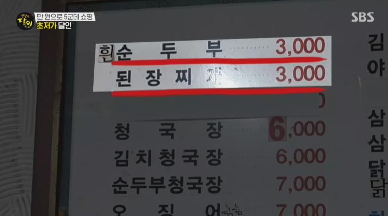 SBS <생활의 달인>에서 소개된 정광자 달인의 초저가 리스트는