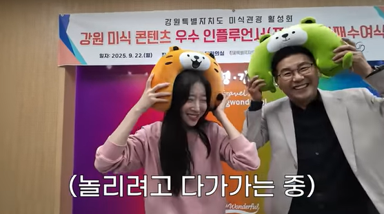 먹방을 마친 쯔양은 강원도 관계자로부터 **‘강원 미식 활성화 공로 감사패’**를 받았습니다.