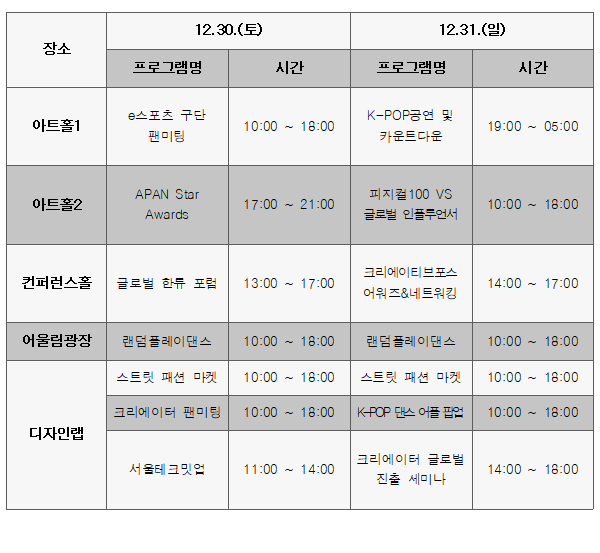 ○ ‘한류스타·글로벌 인플루언서 시상식(12.30.)’ ‘서울콘 콘서트’(12.31~1.1), 1월 1일 새벽 EDM 공연