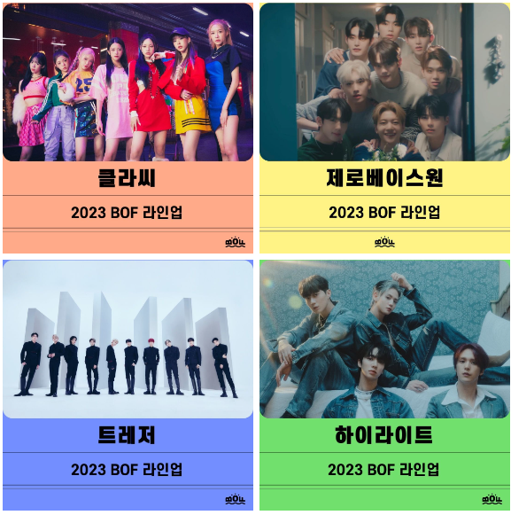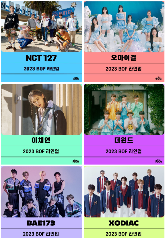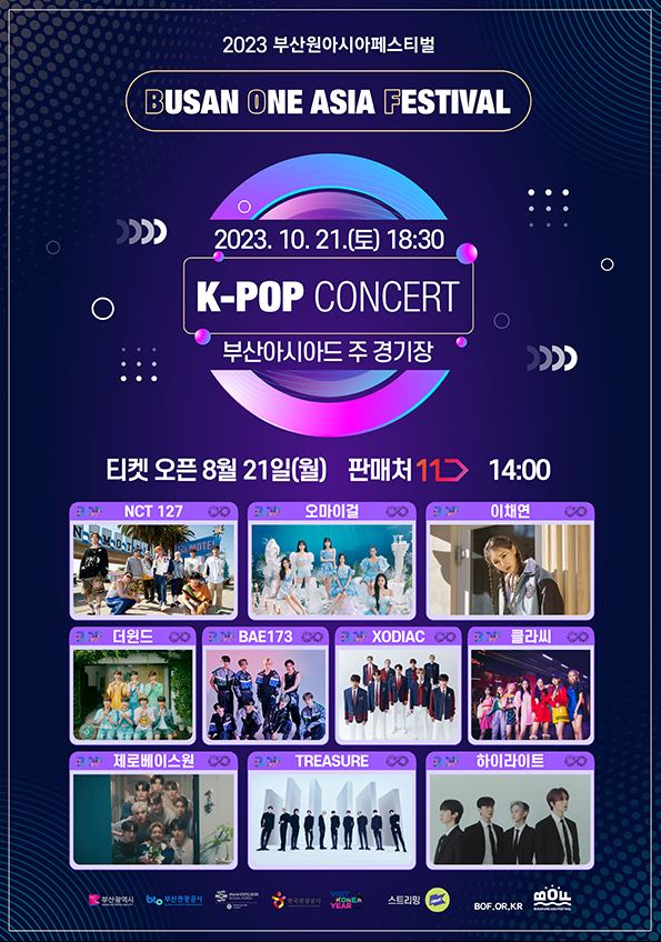 대한민국을 대표하는 한류문화관광 축제인 '2023 부산원아시아페스티벌' (Busan One Asia Festival, 이하 BOF)의 K-POP 콘서트 최종 라인업이 공개되었습니다.