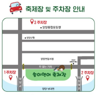 - 장소 : 양양 남대천 둔치, 다목적광장, 전통시장, 퐁당퐁당 물노이장